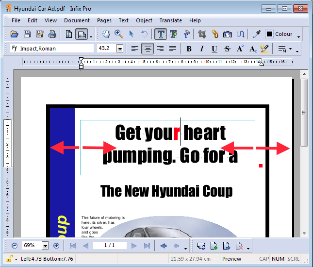 Infix Pro PDF Editor enables you to edit text in a PDF document as if you were using a regular word processor.