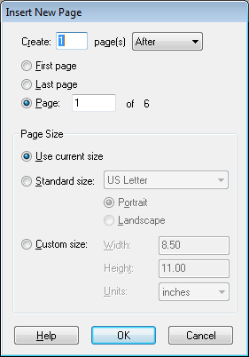 - Use Current Size makes the new pages the same size as the currently displayed page.