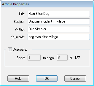 Press Duplicate to copy the article box just created across other pages. This is handy for documents with a predicable layout, having text in the same place across a contiguous range of pages.