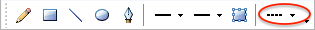 ) tools to draw. - Click on the dashed-line menu to change the dash pattern of the current selection.