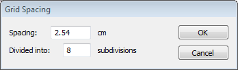 - To change the units used for the grid, choose File->Preferences... and click on the Editing tab.