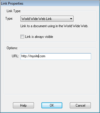 After drawing the hyperlink box, the Link Properties dialog box is displayed.