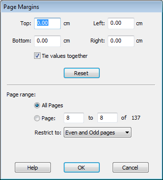 - Choose the page range for the new margins. You can have different margins on odd and even pages by applying margins twice - once for odd pages, once for even.