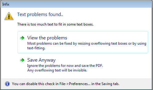 Infix Pro PDF Editor always checks for problem 1 when you save a PDF.