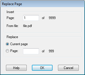 The donor document is unaffected by this operation - a copy of the page is made before insertion into the current document. - Choose the page to be replaced in the current document.