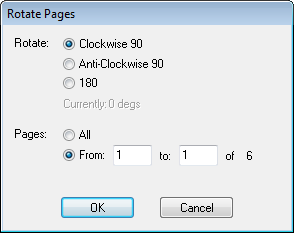 - The dialog displays the current page rotation in light-grey text near the 180 degrees radio button.