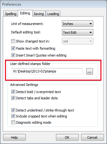 - Enter the location of your stamps folder in the User-defined stamps folder edit box or press the browse button (