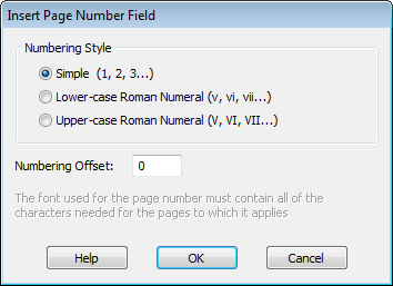 - Choose Text->Insert Page Number...